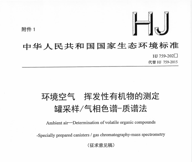 • 《環(huán)境空氣 揮發(fā)性有機物的測定 罐采樣/氣相色譜-質譜法》迎 2021-03-19